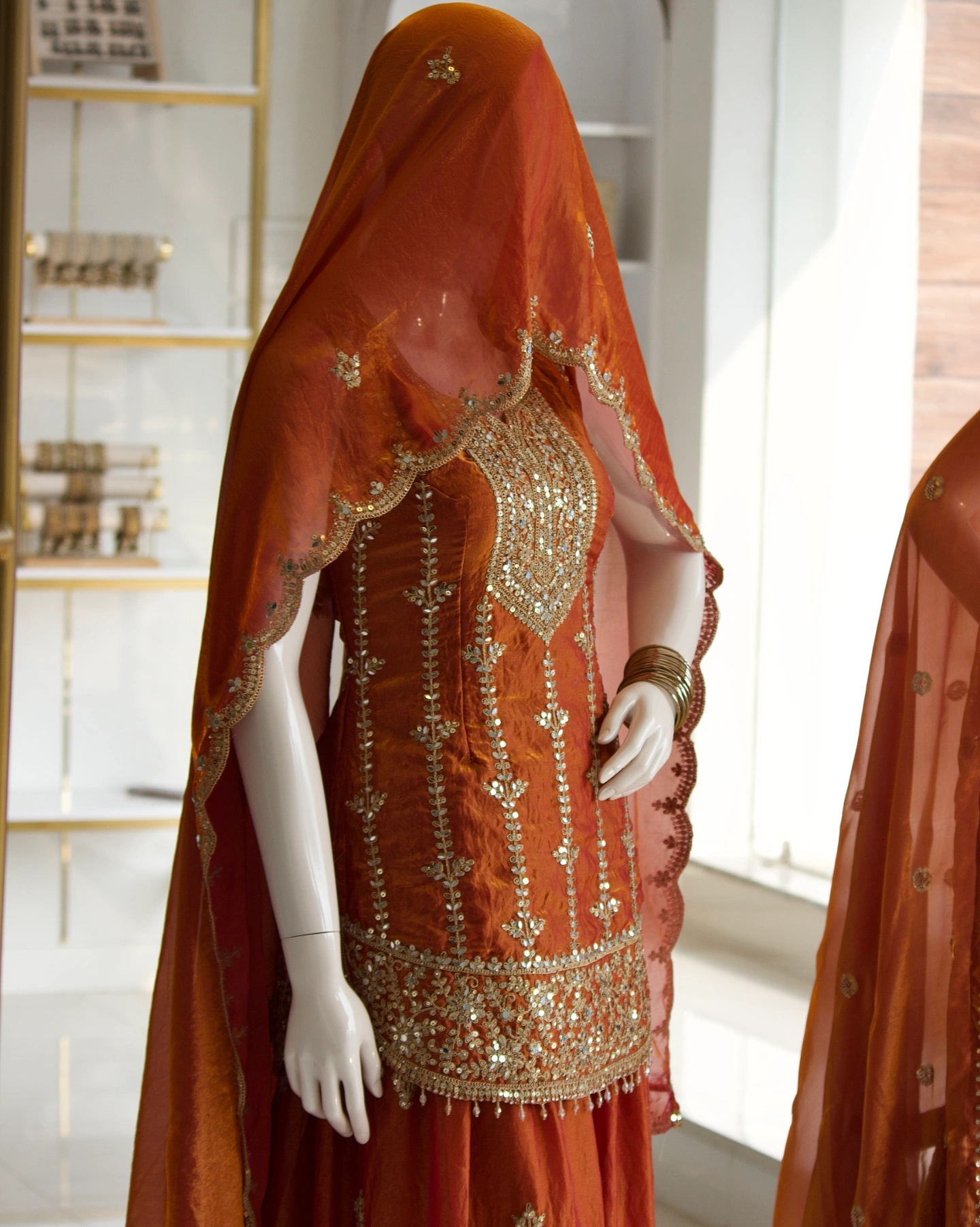 Crafted for the woman who carries grace in every step, this kurthi wraps you in the vibrant spirit of festivity and culture. The deep orange tones are carefully chosen to complement every skin tone, making you glow from within — whether it's a family gathering, a festive puja, or a casual outing done right.